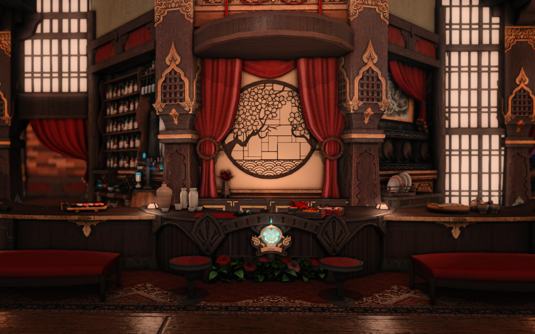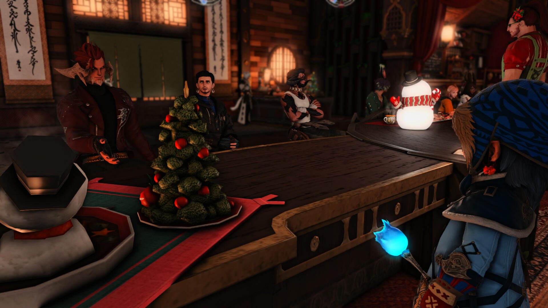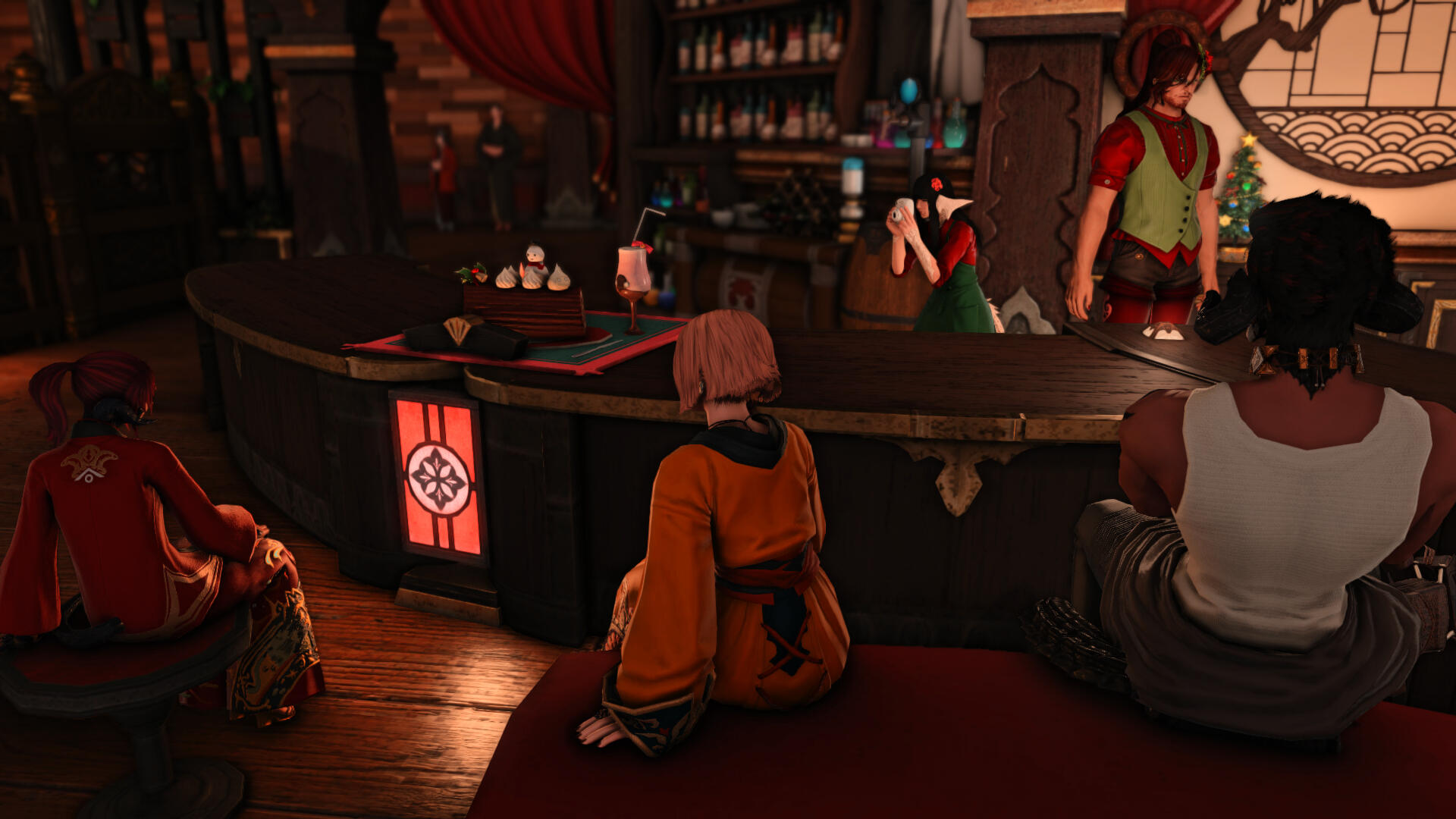The Jeweled Cypress is a Hingan and Doman eatery-and-tavern hosted in Limsa Lominsa on the Mateus server of FFXIV.It is open every other Sunday evening from 7pm to 10pm EST.