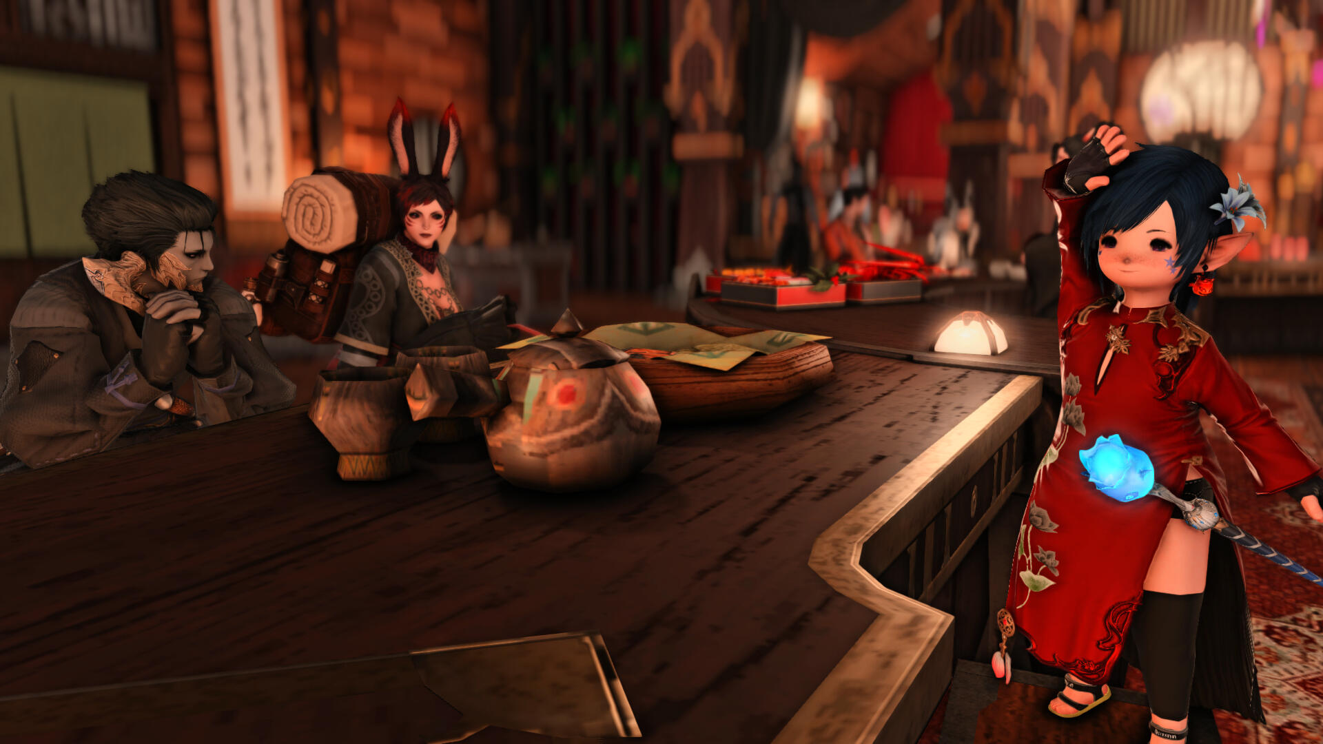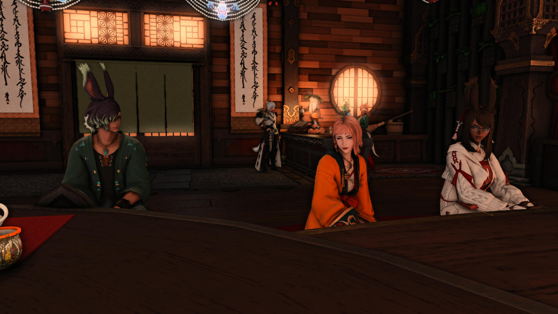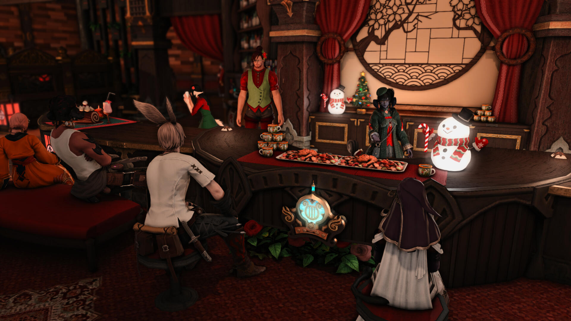The Jeweled Cypress is a Hingan and Doman eatery-and-tavern hosted in Limsa Lominsa on the Mateus server of FFXIV.It is open every other Sunday evening from 7pm to 10pm EST.
